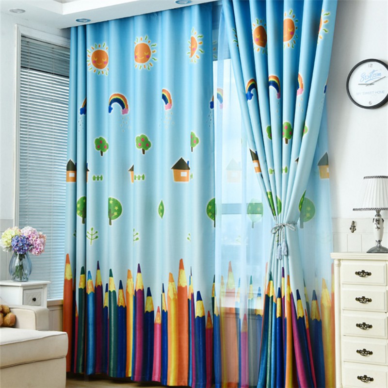 Child Pencil Curtains Cartoon Printed Curtains Kids Room Bedroom